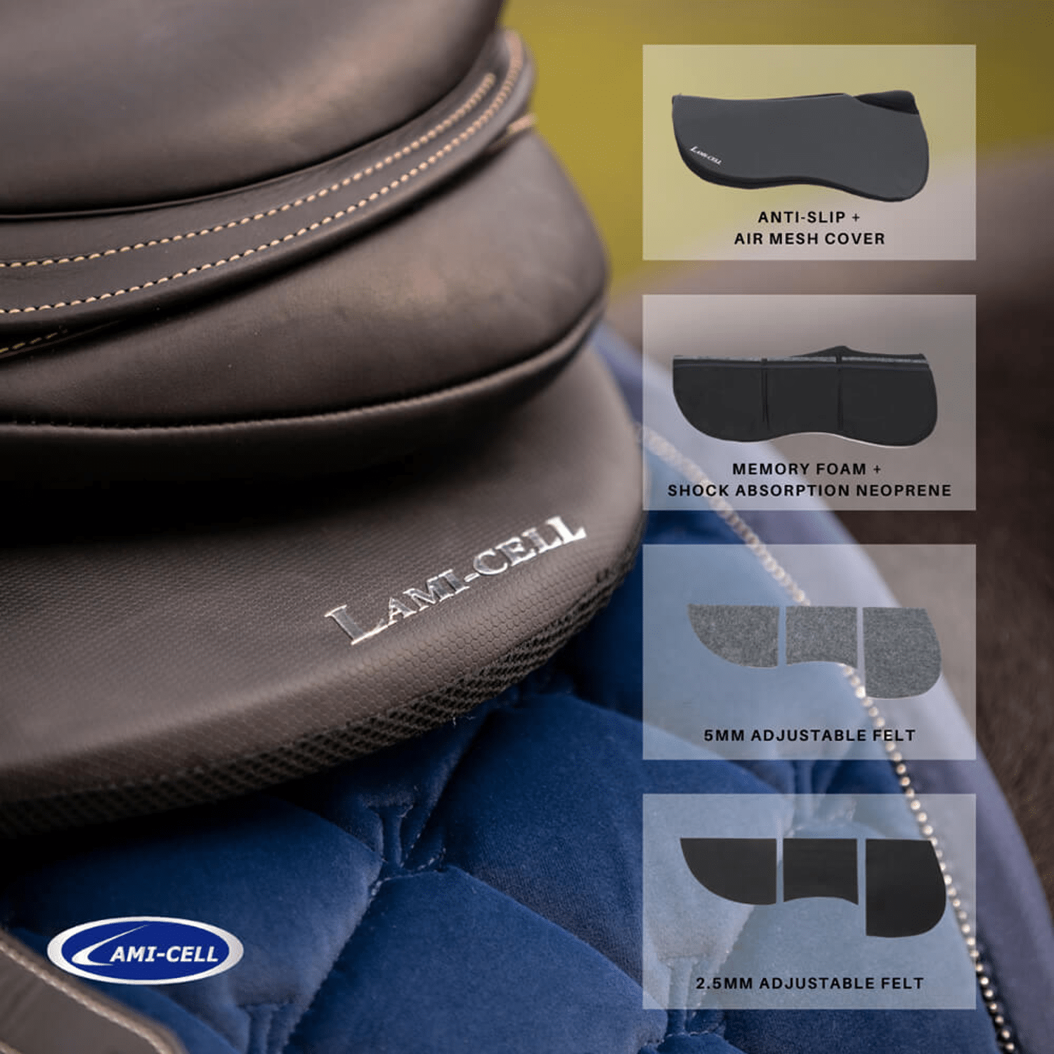 Lami-Cell schokbreker. De memory foam geeft een betere pasvorm aan het zadel. Ademend met Lami-Cell anti-slip silcoon logo. 13mm memory foam en 3mm neopreen.