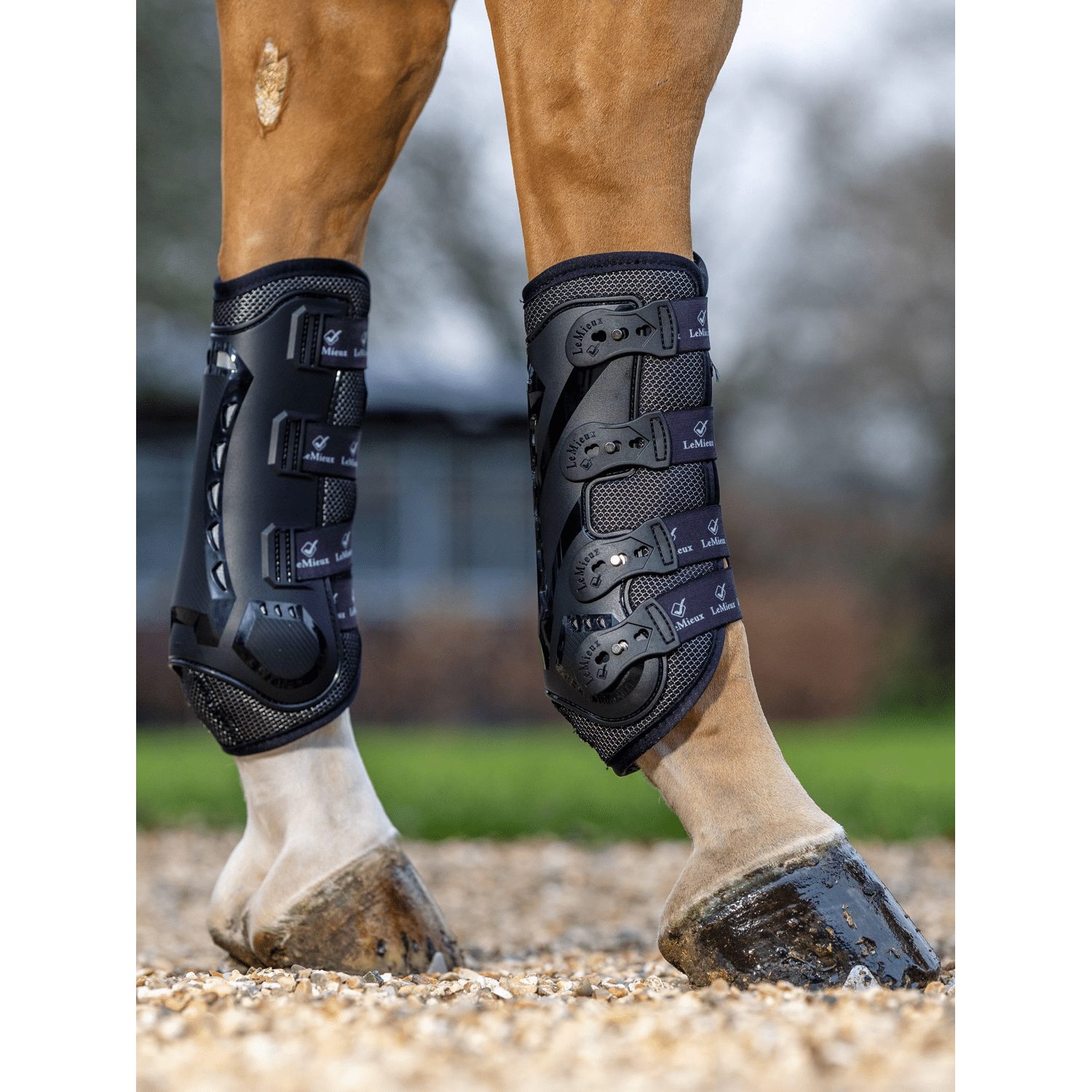 Nu met verbeterde pasvorm! Het nieuwe ontwerp is de perfecte combinatie van ondersteuning en bescherming en meerdere ventilatieopeningen langs de pezen om de benen koel te houden. Een ideale allround beschermer geschikt voor zowel training als springen, met de nadruk op flexibiliteit en ademend vermogen tijdens het werk. 3D-mesh en geperforeerde schokabsorberende voering en superzachte elastaan-binding houdt de benen koel en schuurt niet. Gebruiksvriendelijke Quick Release-nopjes zorgen voor eenvoudige positionering en elastische sluiting is veilig, en zorgt voor stabiliteit.