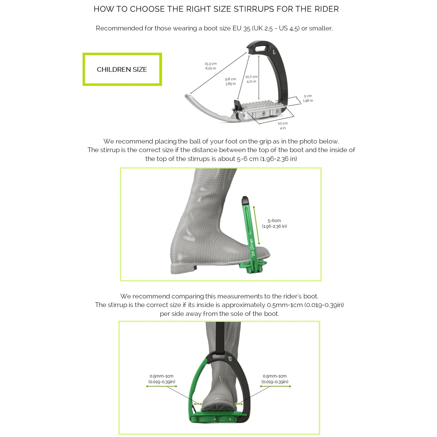 Aanbevolen voor ruiters met schoenmaat EU 35 (UK 2,5 – US 3) of kleiner.