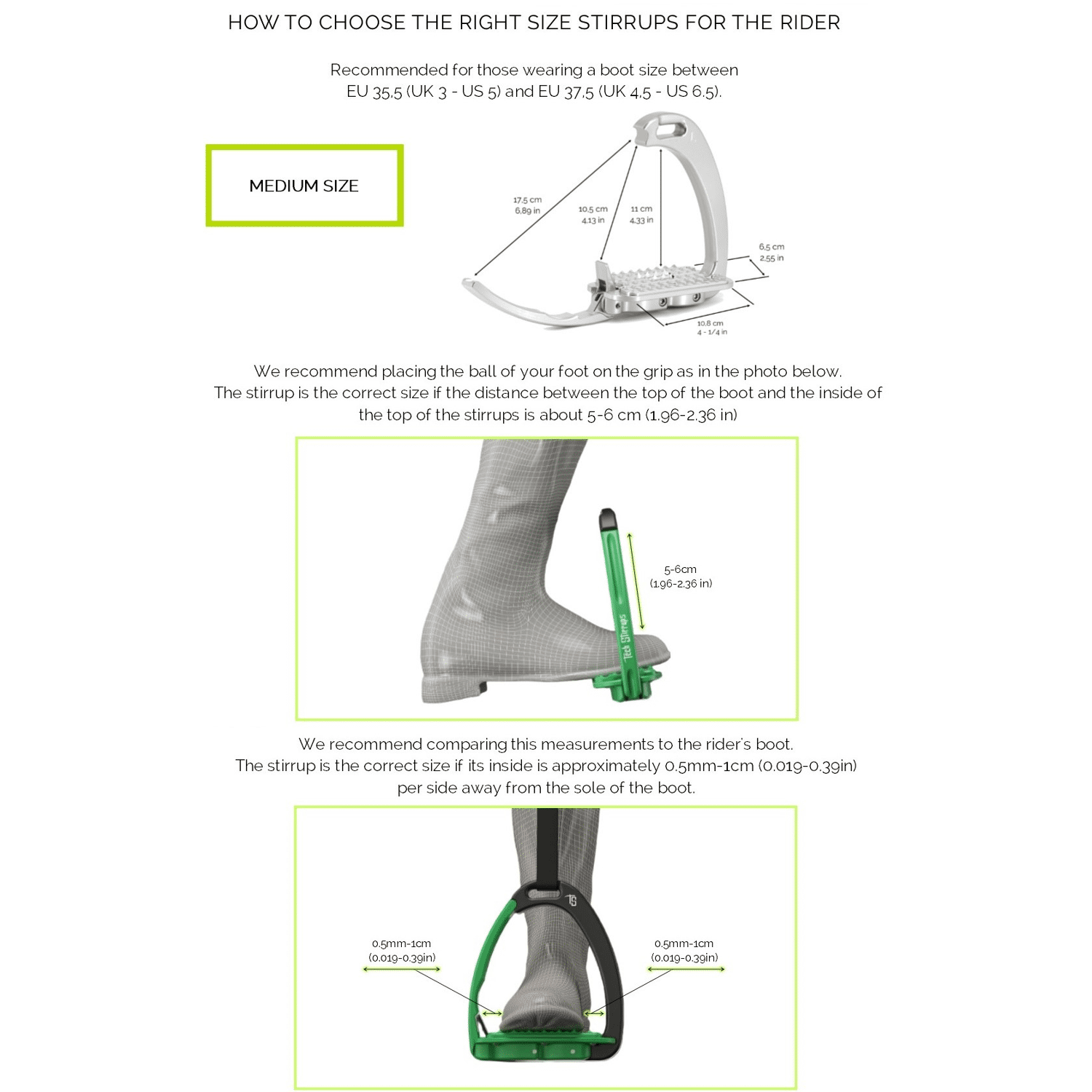 Aanbevolen voor ruiters met schoenmaat tussen EU 35,5 (UK 3 – US 5) en EU 37,5 (UK 4,5 – US 6,5).
