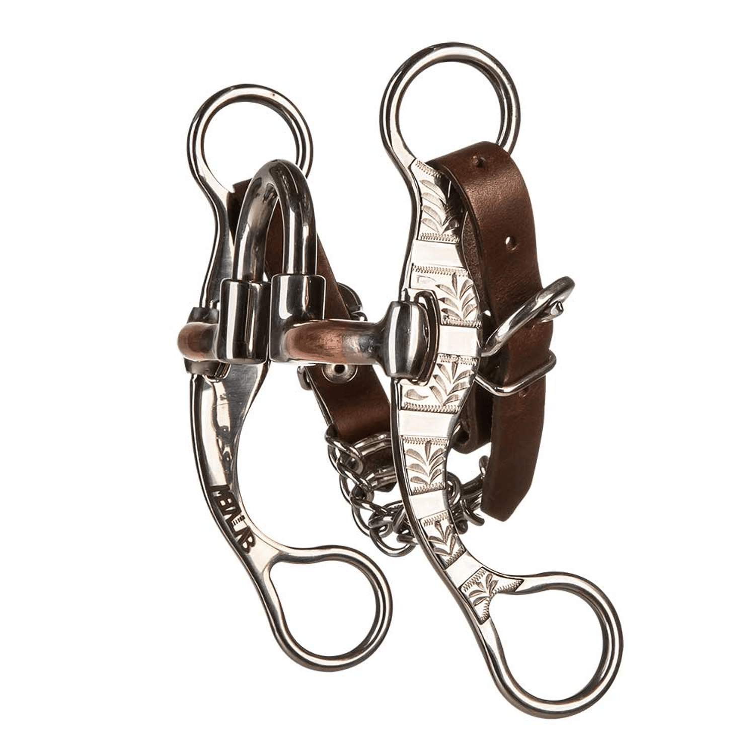 Bernard Fonck correctional bit in roestvrij staal met 10mm koperen mondstuk, hoge poort, 19cm (7-1/2″) medium gegraveerde scharen en kinketting. Niveau 2, matig effect.