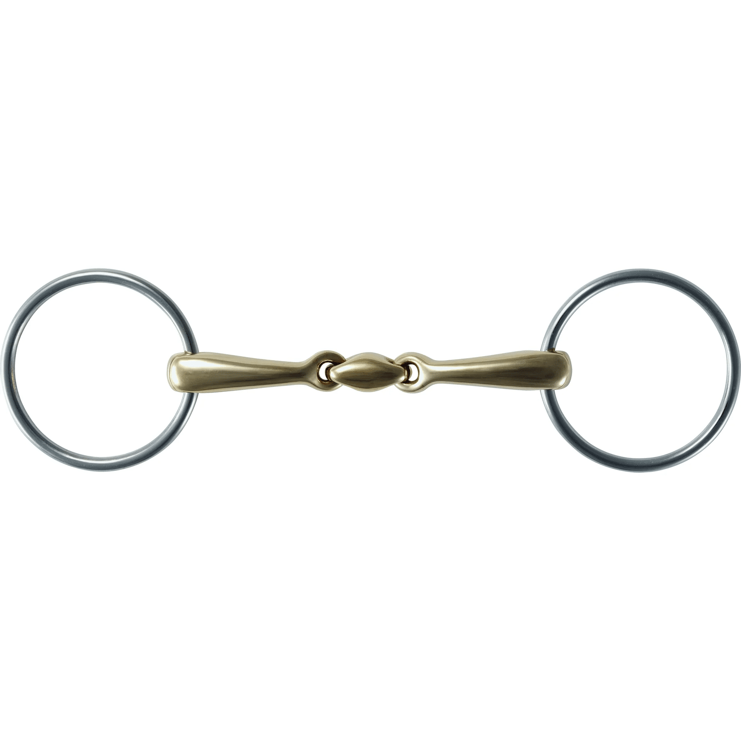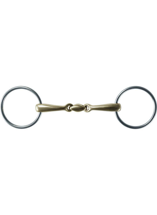 De 2222 Watertrens, dubbel gebroken, is een zacht, uitgebalanceerd bit dat vaak wordt gebruikt voor gevoelige of jonge paarden. Het heeft een dubbelgebroken mondstuk dat de druk gelijkmatig over de tong en de lagen verdeelt, en losse ringen die het bit laten bewegen en een neutrale positie laten vinden.