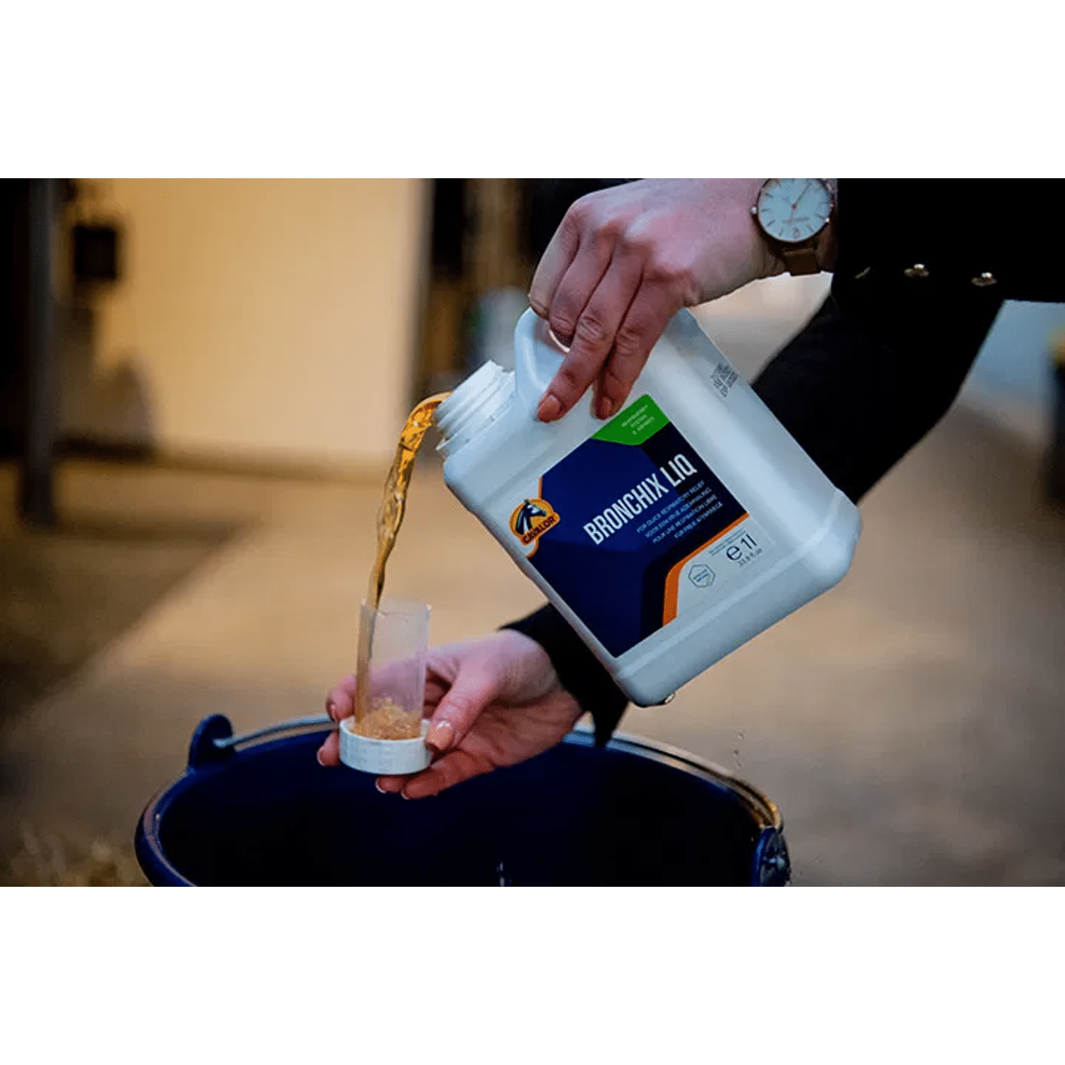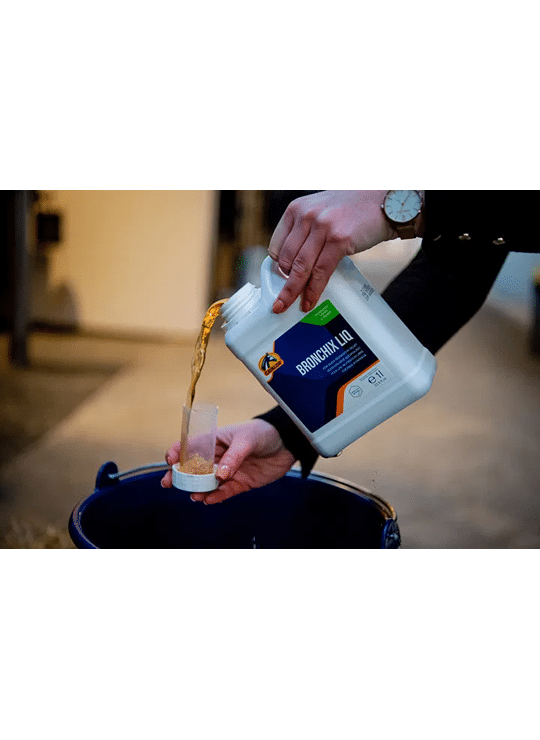 Cavalor Bronchix Liq biedt een oplossing om de luchtwegen snel vrij te maken. Het heeft een verzachtende invloed in geval van irritatie van de bovenste luchtwegen. Cavalor Bronchix Liq is een preparaat ter ondersteuning van de luchtwegen bij paarden. De siroop biedt snelle hulp bij ademhalingsproblemen in de bovenste luchtwegen, specifiek bij een kriebel in de keel of slijm door irritatie. Een prikkelende kriebel in de keel is vaak van tijdelijke aard, maar is toch vervelend en hinderlijk voor het paard. Cavalor Bronchix Liq bevat een mengeling van plantenextracten die het makkelijker maken om te ademen en de luchtwegen ondersteunt en verzacht.