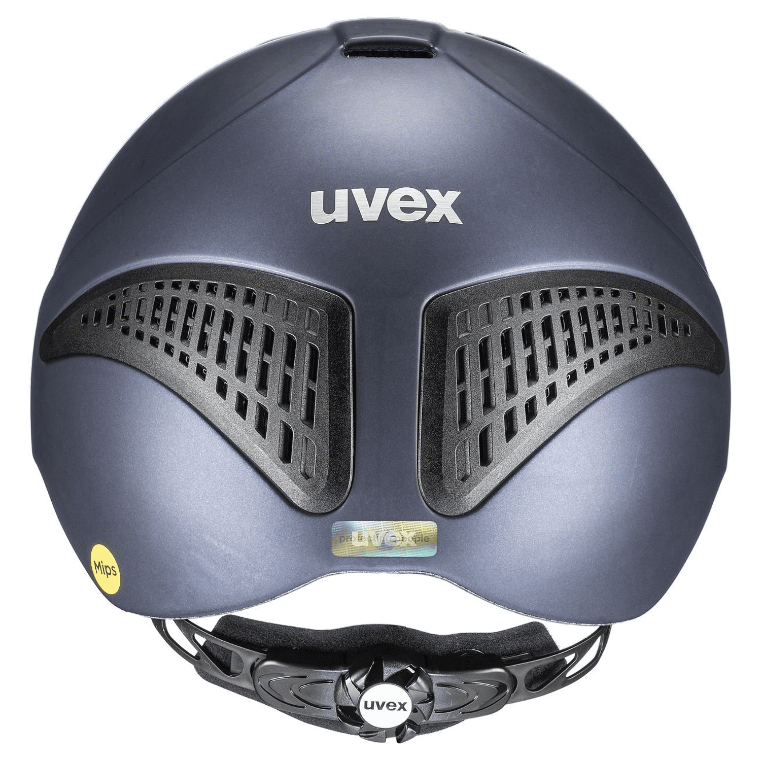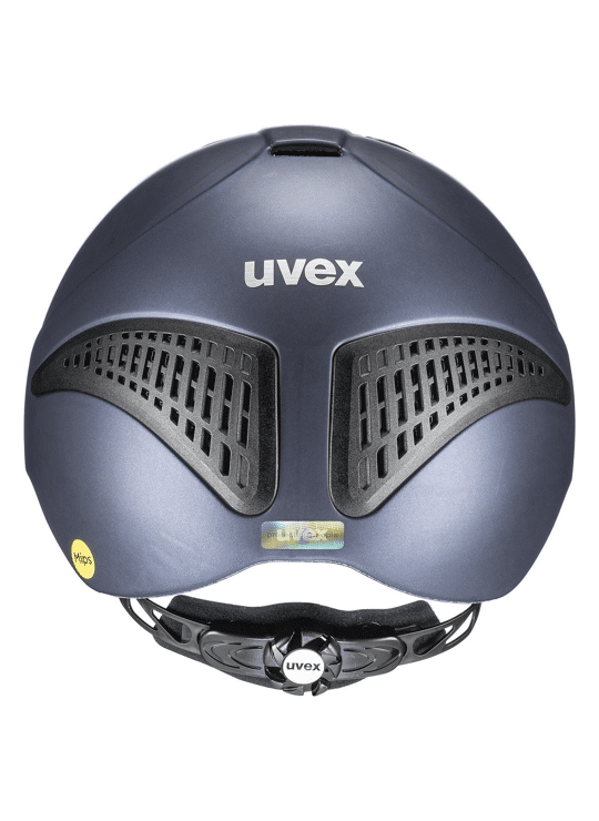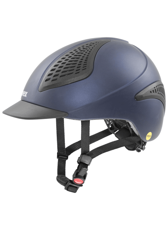 Extra bescherming: als de ruiter bij een val onder een hoek terechtkomt, wordt de roterende kracht niet op het hoofd overgedragen, maar door de beweging van de MIPS-binnenhelm afgevoerd. Bovendien biedt het ergonomische helmontwerp met de laag uitgesneden helmschaal extra bescherming aan de achterzijde. Een slimme extra functie is de paardenstaartuitsparing, die de helm aanzienlijk comfortabeler maakt voor ruiters met lang haar.