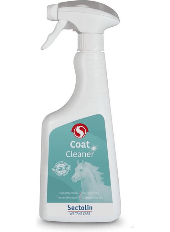 Extra informatie:Vooral bij paarden met een lichte kleur en op aftekeningen zie je snel vieze vlekken. Wanneer je je paard niet kunt wassen, bijvoorbeeld in de winter of wanneer er geen water bij de hand is, is Coat Cleaner de ideale oplossing om vlekken snel en eenvoudig te verwijderen. Deze droogshampoo spray je eenvoudig op de vlek en wrijf je na met een droge doek of keukenpapier. Het vuil verdwijnt en de spray maakt het haar ook vuilafstotend, dus pakt deze minder snel nieuw vuil aan.