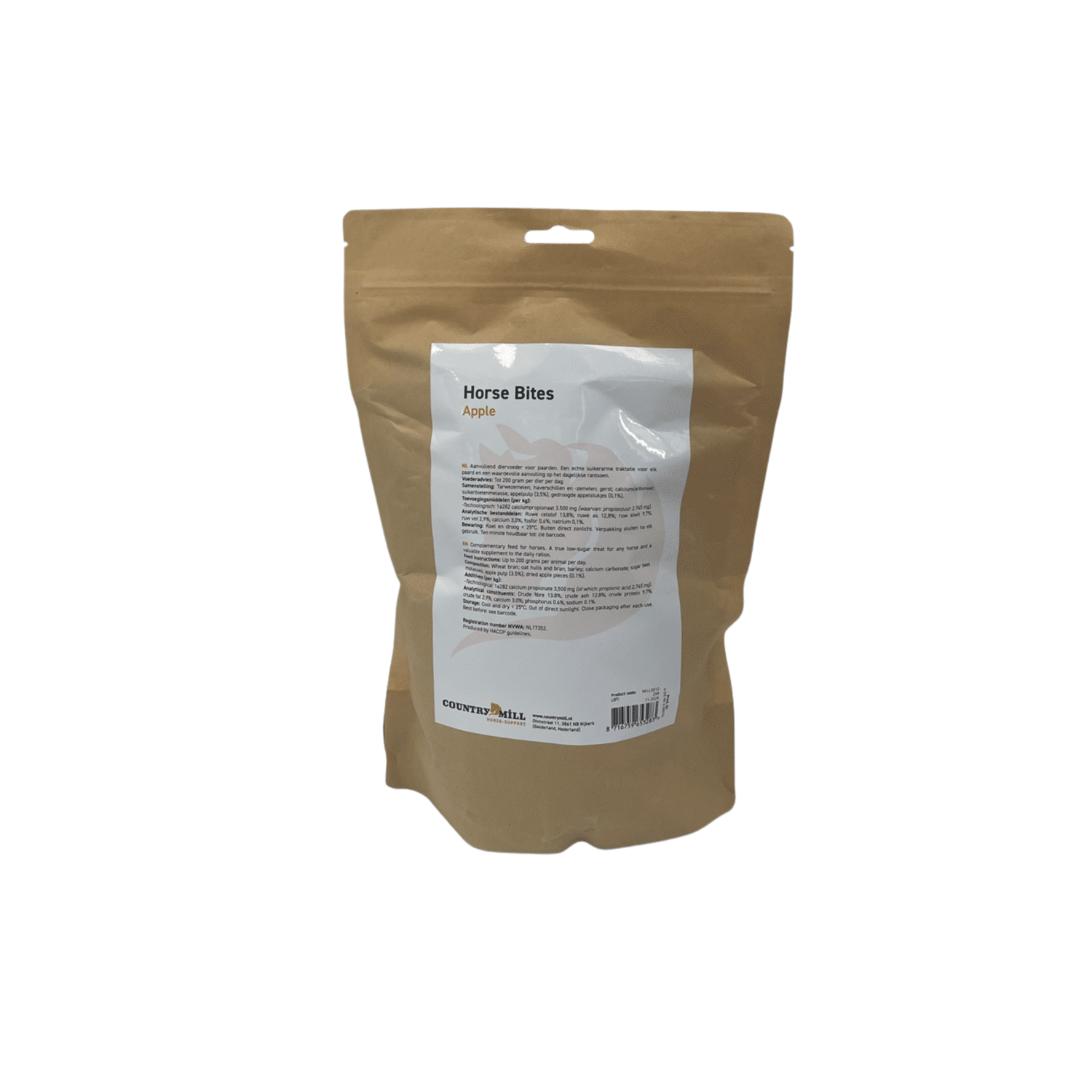 Smakelijke paardensnack met heerlijke appelsmaak. Perfect als beloning tijdens training of gewoon als tussendoortje voor je paard of pony. Door het kleine formaat zijn de bites makkelijk te voeren.