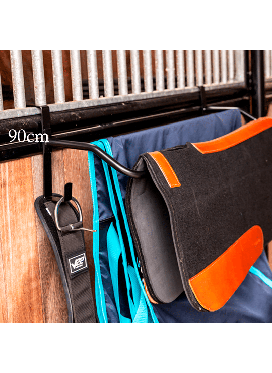 Zadeldoek houder voor westernpad of dekens. Makkelijk te verplaatsen en geen materiaal nodig om op te hangen. Handig om mee te nemen op wedstrijd.