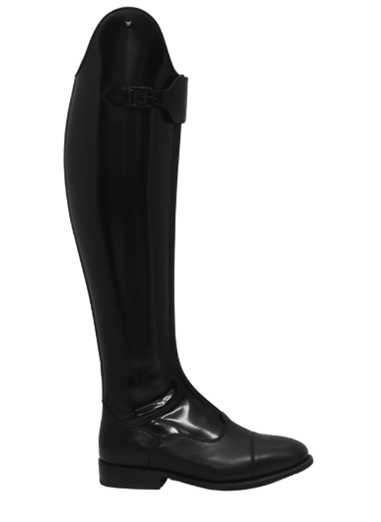 Deze unieke laars is het model De Niro Polo. Dit model is vervaardigd van top kwaliteit sterk Italiaans kalfsleder. Dit leder geeft de rijlaarzen samen met de perfecte afwerking, en de carré gevormde neus zijn exclusieve uiterlijk. Ook de binnenvoering van deze laars is gemaakt van zacht kalfsleder, wat zorgt voor optimaal draagcomfort. Het model Polo heeft standaard een harde buitenkant en een zachte binnenkant voor meer contact, een rits aan de voorkant van de wreef tot de knie, met één grote of kleine ritsbeschermer. Deze rijlaars heeft een mooie pasvorm en sluit ook rond de enkels mooi aan.