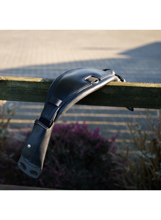 De Anatomica Welfare Classic dressuursingel is speciaal ontworpen ter aanvulling op het Anatomica Welfare zadel en biedt een perfecte balans tussen bewegingsvrijheid en drukverdeling. De anatomisch gevormde singel met smalle uitsnijding bij de oksels en een breed contactvlak onder de borst bevordert comfort en prestatie bij elk paard. Gemaakt van hoogwaardig Haarcel Buffalo leder met een softy-touch afwerking, combineert deze singel luxe met duurzaamheid. De kortere zijdelingse flap (6 cm) en vaste sleuven zorgen voor extra stabiliteit van het zadel en een optimale pasvorm. Een subtiel geïntegreerde ring bij de borst maakt bevestiging van hulpteugels mogelijk zonder concessies te doen aan comfort.