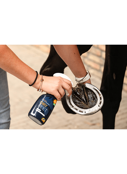 De vernieuwde, natuurlijke formule van Cavalor Dry Feet op basis van pre- en probiotica voorziet de zool en straal van een beschermende en goede microflora die actief pathogenen verdringt. Dit product wordt wereldwijd gebruikt door dierenartsen, hoefsmeden, grooms en ruiters om zachte delen in de hoef te behandelen. De nieuwe formule van Cavalor Dry Feet is 100 % natuurlijk en bevat een combinatie van goede bacteriën (probiotica) en inuline (prebiotica). De inuline stimuleert de probiotica aanwezig in het product in hun activiteit en eveneens de reeds aanwezige goede micro-organismen op de hoef. Samen koloniseren ze het ganse hoefoppervlak waardoor slechte bacteriën, die bijvoorbeeld rotstraal veroorzaken, actief verdrongen worden.