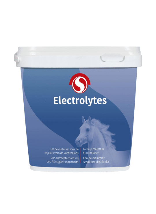 Extra informatie:Bij hoge temperaturen of zware inspanningen zweet een paard veel. Via dit zweet raakt een paard ook veel elektrolyten kwijt. Elektrolyten reguleren de vochtbalans in het lichaam en zijn belangrijk voor de energiehuishouding, de pH balans, de aanspanning en ontspanning van spieren en de signaaloverdracht van de hersenen en het zenuwstelsel. Deze elektrolyten kan een lichaam niet zelf maken, maar moeten uit voeding en drinkwater gehaald worden. Bij langdurige inspanning verliest een paard aanzienlijk meer elektrolyten via zweet dan dat er via het normale voer weer kan worden aangevuld. In deze gevallen is het belangrijk om het paard te voorzien van extra elektrolyten.