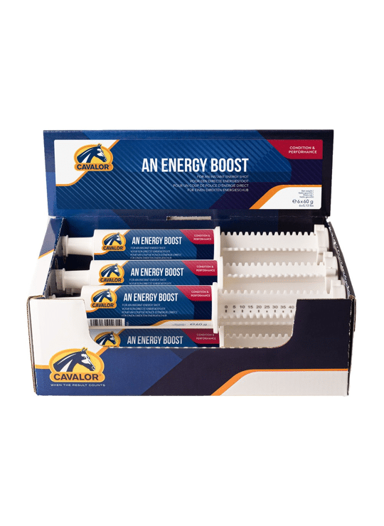 Cavalor Energy Booster is een pasta die elektrolyten bevat, gecombineerd met aminozuren en B- vitamines voor een maximaal resultaat. Kan gebruikt worden voor optimaal herstel na competitie. Geeft het paard een korte en krachtige energiestoot.