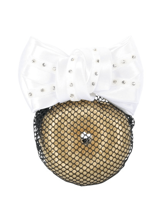 Luxe haarstrik met haar/knotnet. Gedecoreerd met fluwelen strepen met daarop enkele stras steentjes.