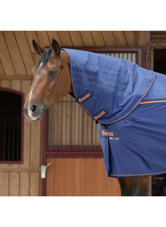 Door de twee klittenband sluitingen is dit halsstuk gemakkelijk te bevestigen aan de Bucas Therapy Cooler. De twee ringen met klittenband sluitingen zorgen ervoor dat hij goed blijft zitten om de hals van het paard.