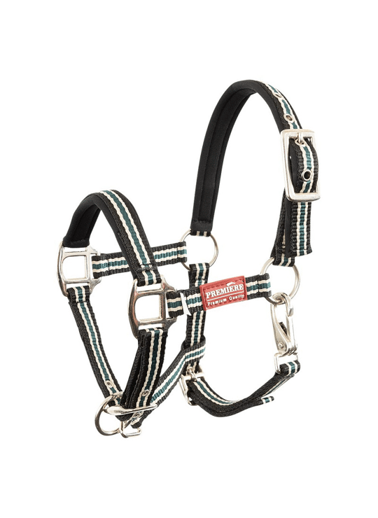 Dit handige halster is speciaal ontwikkeld voor veulens en is bij de neusriem en het kopstuk gevoerd met zacht neopreen voor een aangenaam gevoel. Het halster is verstelbaar met een gesp bij het kopstuk, de keelriem en de neusriem voor een goede pasvorm. De zinkkleurige, verzilverde gespen/hardware zijn stevig en gaan lang mee. De banden hebben een breedte van 2 cm.