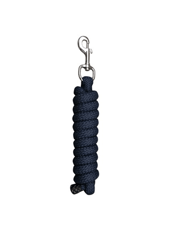 Stevig gevlochten halstertouw met gevulde kern. Bijzondersterk, materiaal wordt ook gebruikt in touwen voor bergklimsport.Zilverkleurige musketon.