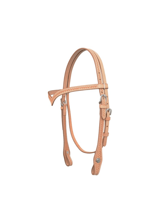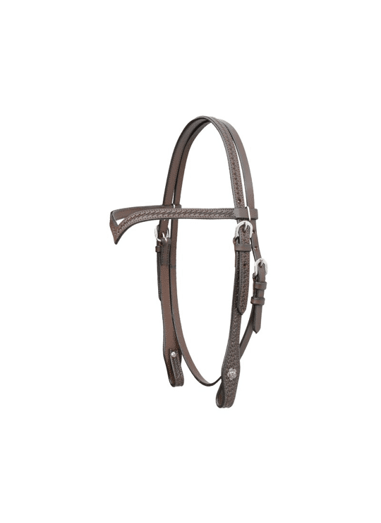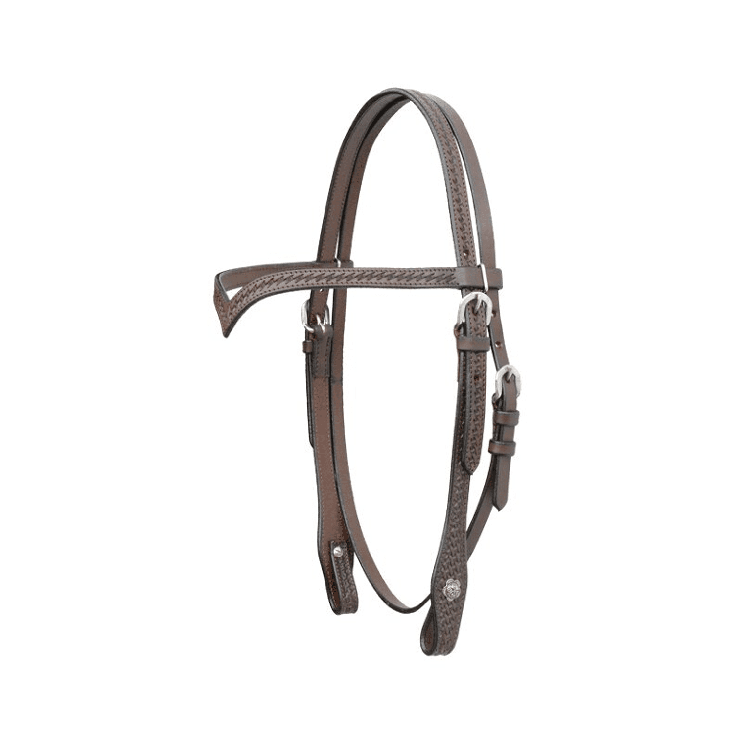 Western hoofdstel met een V-vormige frontriem. Het western hoofdstel is verkrijgbaar in drie verschillende kleuren.