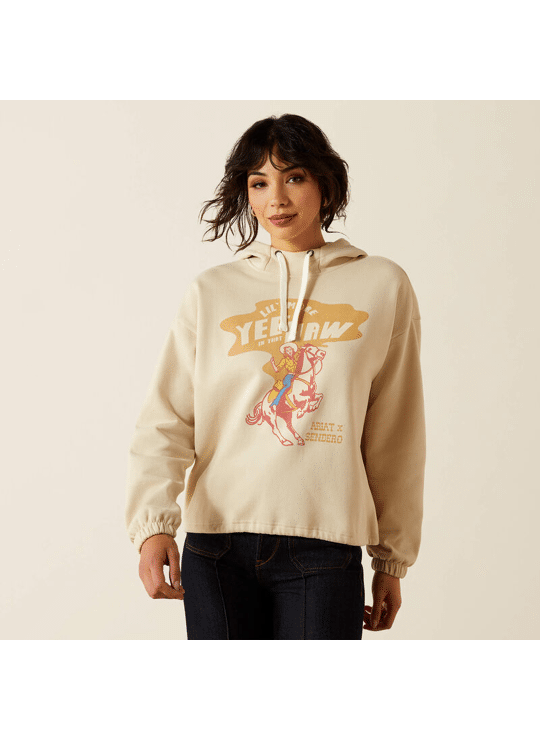 We zijn terug in het zadel met onze vrienden bij Sendero. Deze hoodie is ontworpen in samenwerking met onze fans en combineert onze favoriete laag met het soort retro artwork waar het Texaanse merk bekend om staat. Het is comfortabel, het is gezellig en het ziet er net zo goed uit om taco's te pakken als om hekken te berijden.