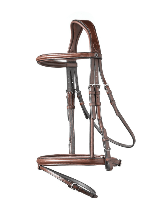 De TRUST Knokke is een tijdloos hoofdstel met een gecombineerde neusriem. Daarbij heeft het hoofdstel een prachtige stitching, wat zorgt voor een mooi effect. De padding van het kopstuk is zacht maar niet te dik zodat er direct contact is met het paard. Daarbij zijn zowel de neusriem als de frontriem soft padded en gevoerd met softy. De sperriem heeft een buckle protector waardoor de gesp nooit de neus van het paard raakt.