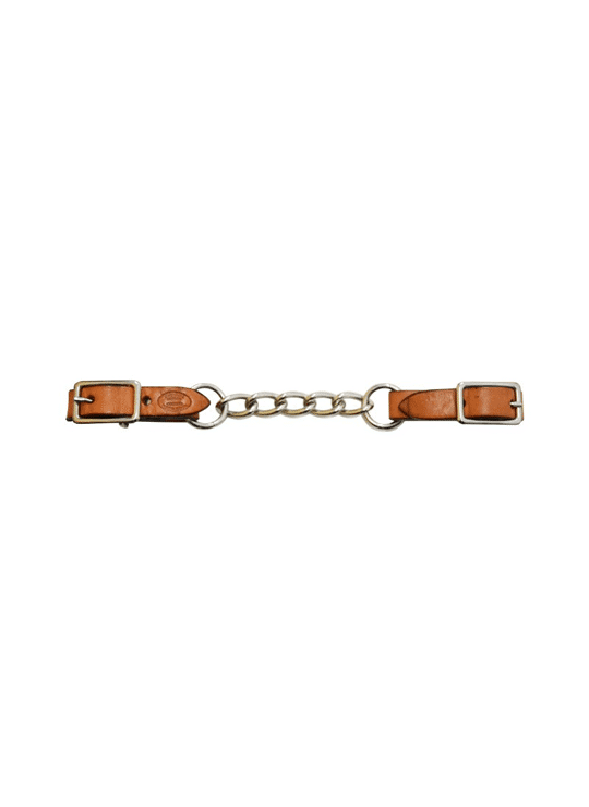 Kinketting met leer in verschillende kleuren. De kinkettingen zijn het meest geschikt voor alle gangbare bitten en western ceinturen. De kinketting is in lengte verstelbaar.
