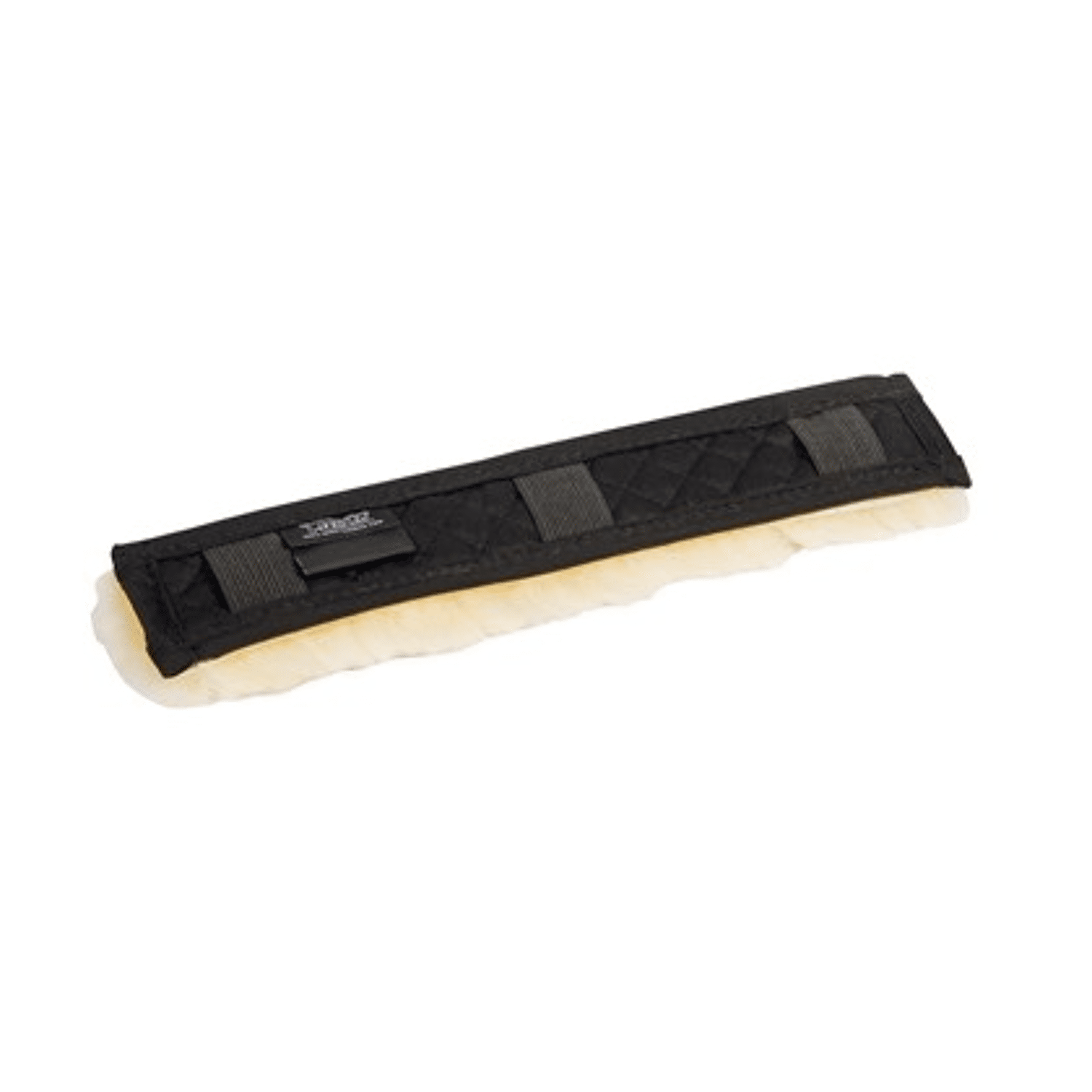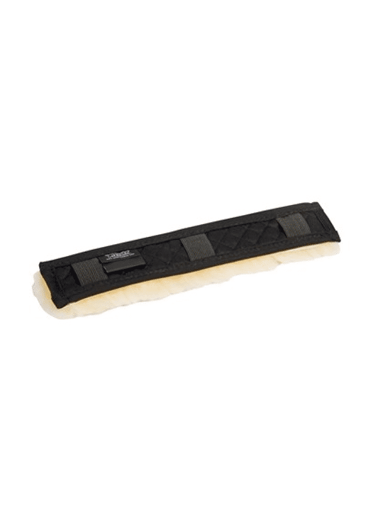 Kopstukbeschermer van 100% Merino met drie elastieken om de beschermer op zijn plaats te houden.