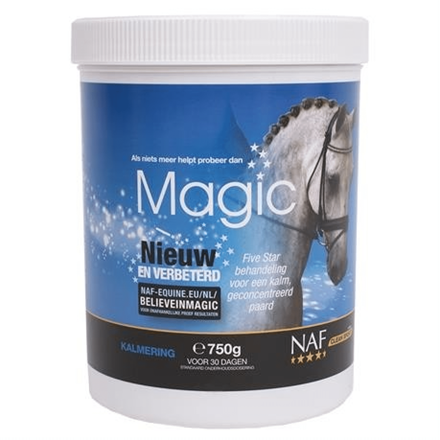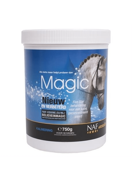 Five Star Magic is een natuurlijk rustgevend middel voor paarden dat zich op een belangrijk punt onderscheidt. In plaats van te vertrouwen op één werkzaam ingrediënt, wordt in deze speciale formule een combinatie van magnesium en zorgvuldig geselecteerde rustgevende kruiden gebruikt. Deze bijzondere mix zorgt voor meer rust, zelfvertrouwen en concentratie bij paarden en pony's. Een tekort aan magnesium kan ontstaan door een onnatuurlijk rantsoen, een arme bodem of spanning door regelmatig reizen. Wat de oorzaak ook is, een magnesiumtekort leidt vaak tot stress, nerveus gedrag, te veel spierspanning of een gebrek aan zelfvertrouwen bij het paard. Omdat in de natuur niets op zich zelf staat en samenwerking essentieel is, is bij de samenstelling van Five Star Magic gekozen voor een unieke combinatie van ingrediënten die elkaar versterken. De kracht van kruiden en planten is algemeen bekend en heeft de heilzame werking in angst- en stresssituaties inmiddels bewezen. Ook experimenten tonen aan dat het gebruik van de Magic-formule paarden helpt om vol rust en zelfvertrouwen te doen wat wij van ze vragen. Five Star Magic is verkrijgbaar in poeder en vloeibare vorm en daarom aan te passen aan de behoefte van jouw paard of pony. Staan stress en angst de prestaties van jouw paard in de weg? Geef Five Star Magic voor meer rust, ontspanning en focus.