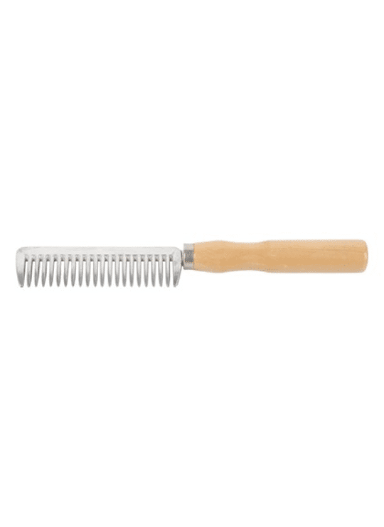 Aluminium manenkam met houten handvat.
