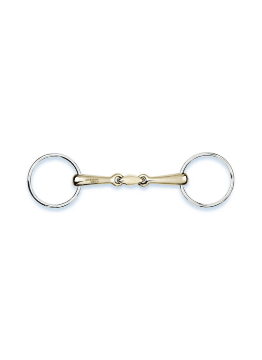 De 2224 Bradoon / Watertrens dubbel gebroken is ontworpen voor gebruik in combinatie met een stangbit in stang en trens hoofdstellen. Hij is dunner dan een gewone trens en heeft kleinere, doorlopende ringen die ervoor zorgen dat het mondstuk zacht en neutraal in de mond van het paard rust. Het dubbelgebroken mondstuk verdeelt de druk gelijkmatig over de tong en de lagen.