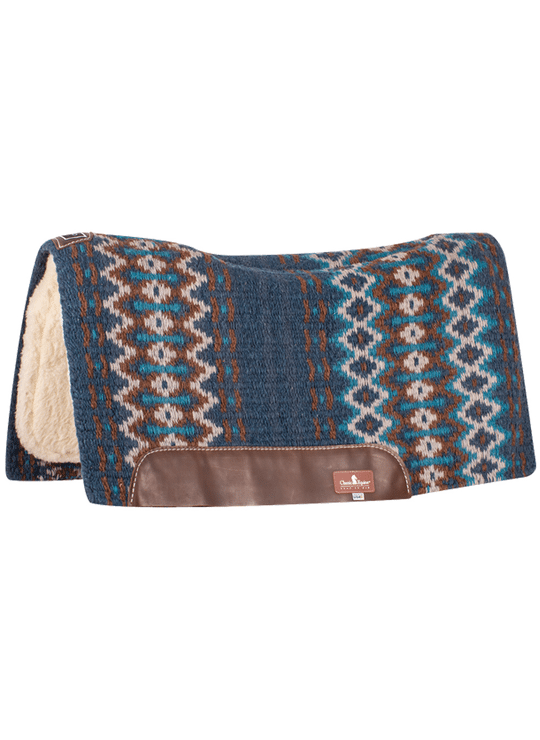 De bovenkant van de Westernpads is gemaakt van geweven katoen, de onderkant is voorzien van een fleece-bont.Een 2 cm dikke wolviltkern beschermt het paard en zorgt voor een zeer goede schokabsorptie en drukverdeling en voert zweet van het paard af.Deze westernpad is een echt pareltje en voldoet aan alle eisen voor dagelijks paardrijden!Het beengedeelte is uitgesneden en de ruiter krijgt een goed contact met het paard.