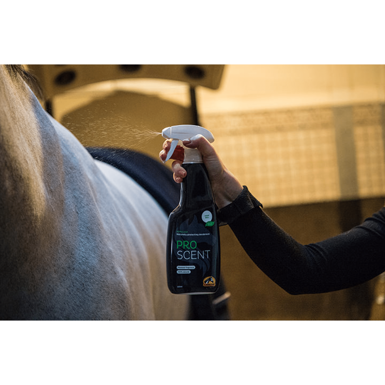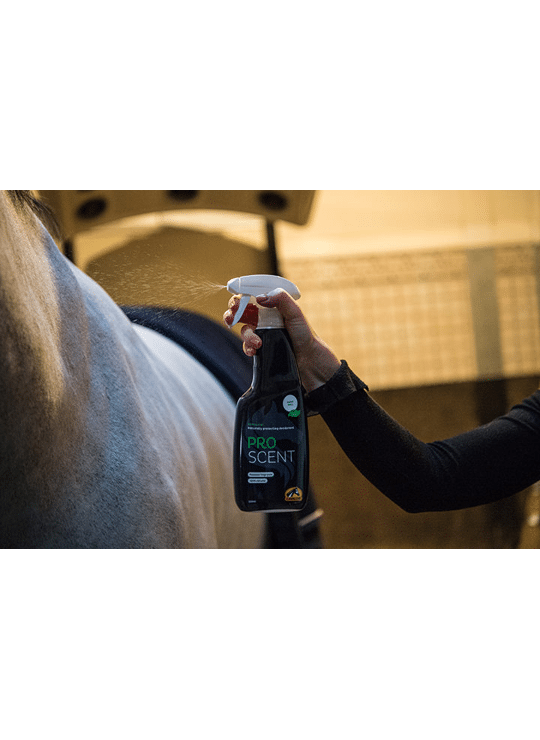 Cavalor Proscent camoufleert niet alleen de geur van paarden en hun zweet, het bevat ook geurstoffen die actief op een afstand houden waardoor jij en je paard minder lastiggevallen worden. Cavalor ProScent zorgt niet alleen voor een frisse geur, het beschermt ook tegen huisinfecties en houdt de vacht glanzend en gezond.