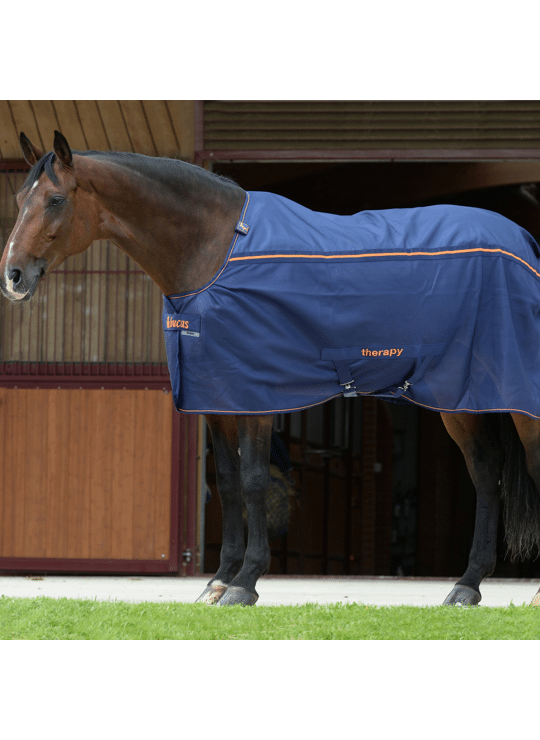 De Bucas Therapy Mesh Cooler is een multifunctionele deken die gebruikt kan worden als staldeken, onderdeken en transportdeken. De bovenlijn van de deken is gemaakt van een speciale roestvrij staaldraad stof. De magnetische velden die het paard van nature maakt worden opgevangen door de stof en terug gereflecteerd. Hierdoor wordt de bloedcirculatie van het paard gestimuleerd. Dit zorgt voor ontspannen spieren en helpt bij een sneller herstel van zwellingen en blessures.