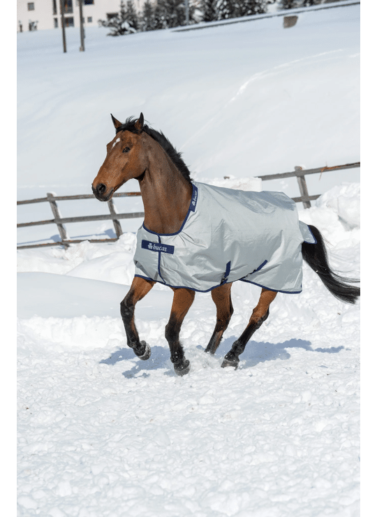 Door de speciale combinatie van een zon- en hitte reflecterende coating en een zilver uiterlijk is deze deken in staat om het paard in alle weersomstandigheden te beschermen. Deze stoffen zorgen ervoor dat lichaamswarmte bij kou beter wordt vastgehouden en zonnewarmte gereflecteerd wordt.