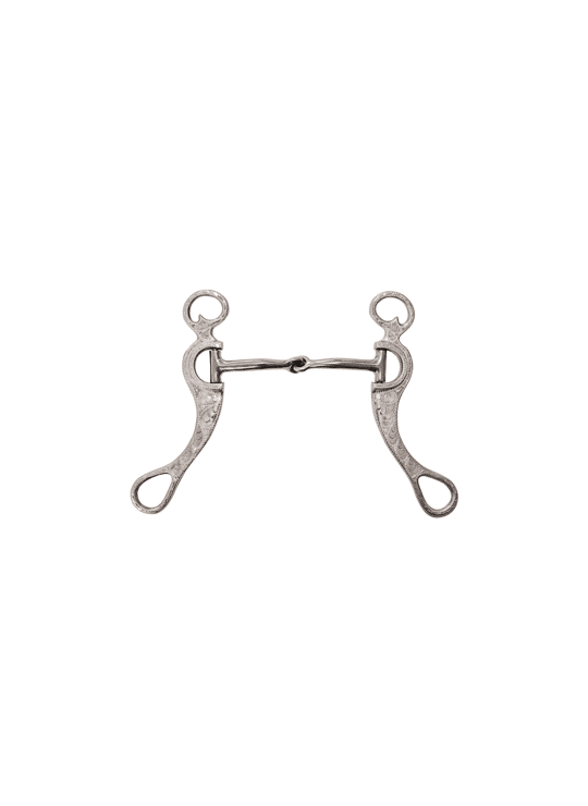 Deze niet-inklapbare shank voorkomt kneuzingen in de mond en biedt voldoende tongverlichting om de mond zacht te houden. Lichtgewicht bit voor paarden van gemiddeld niveau. Prachtig gegraveerde losse, aluminium wangen met een roestvrijstalen mondstuk. Koperen inleg op het mondstuk om speekselvorming te bevorderen.