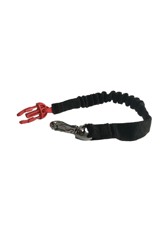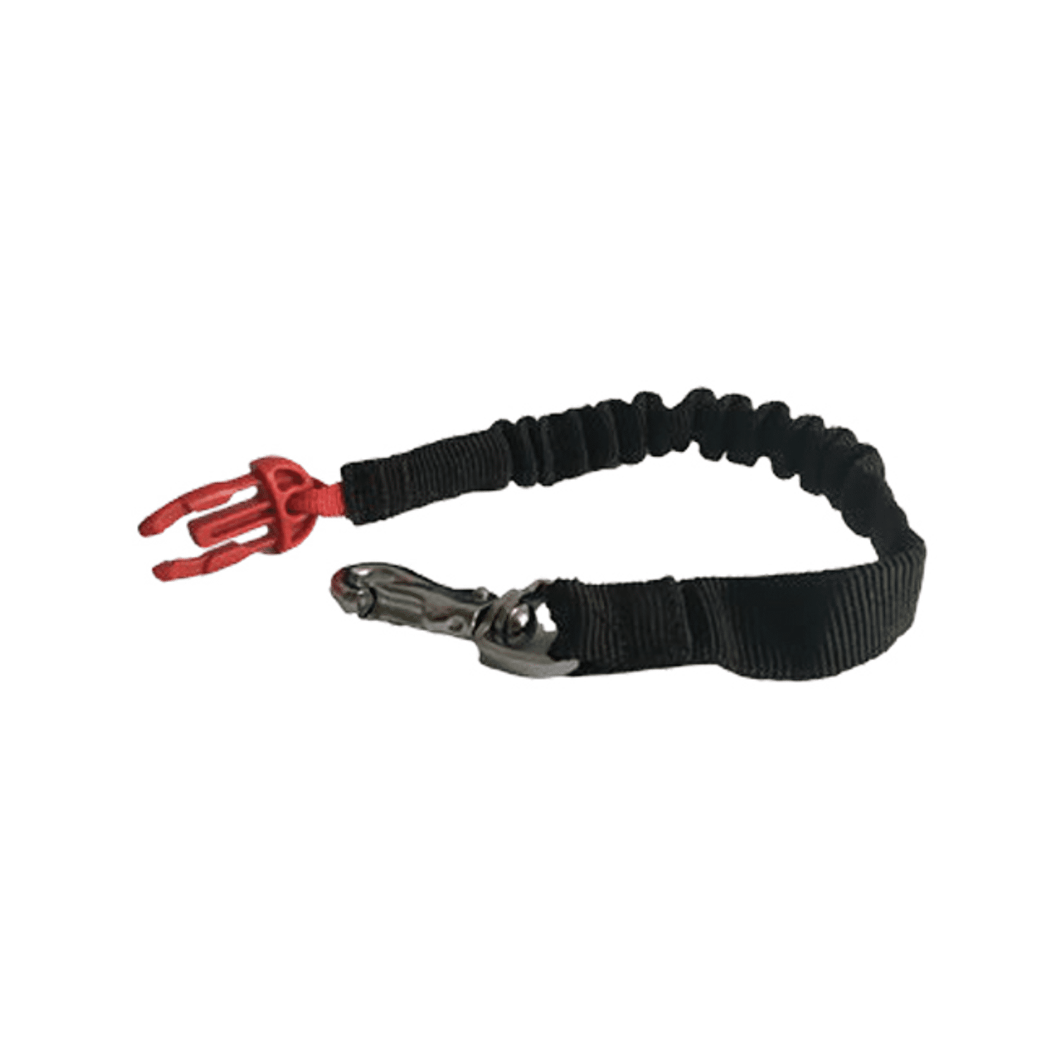 Verstelbare elastische bungee lanyard (bevestigingskoord) is voorzien van een karabijnhaak waarmee hij eenvoudig aan de saddlestrap kan worden bevestigd.