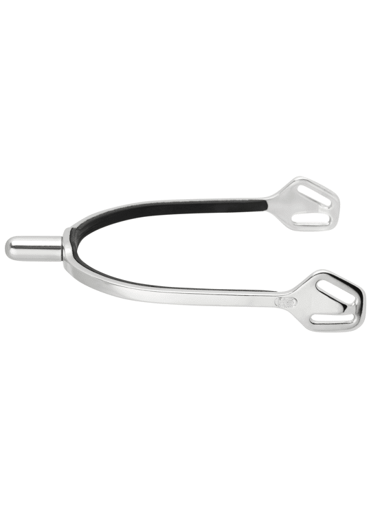 Ultra fit SLIMLINE Bootprotect sporen met Balkenhol systeem. 15mm. Recht uiteinde. De Slimline sporen zijn smaller dan de reguliere sporen, waardoor het een elegante uitstraling heeft. Deze sporen beschermen de laarzen tegen wrijving door de subtiele rubberen afwerking aan de binnenzijde van de spoor. Kan gemakkelijk aangepast worden naar de vorm van de voet door de spoor licht te buigen. Het Balkenhol systeem geeft een unieke pasvorm en design. De sporenbandjes worden in een hoek van 45 graden door de spoor heen gehaald. Door een speciale uitsparing aan de binnenkant van de bevestiging sluit het druk op de enkel en voet van de ruiter uit en blijft de spoor altijd netjes op zijn plek.