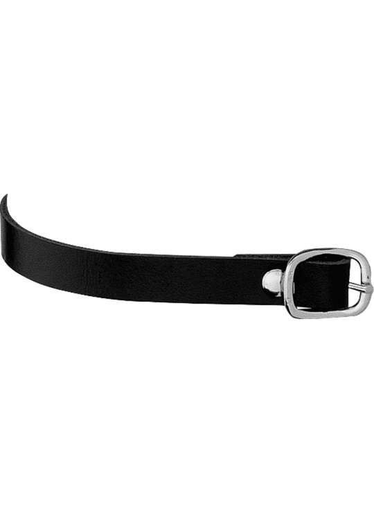 Duurzaam zwart lederen sporenbandjes in hoge kwaliteit. Zilveren gesp, wordt per paar geleverd.