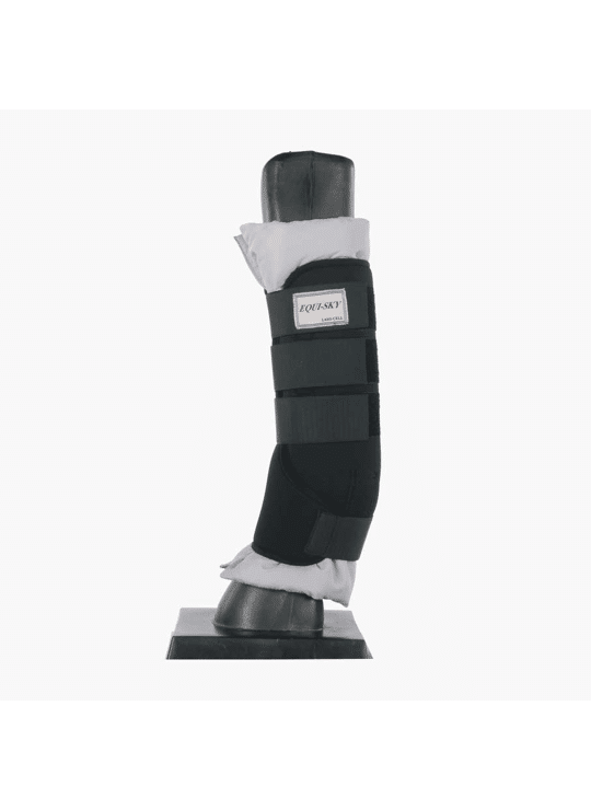 Gecombineerd Equi-sky stal-en transportbandage 2 in 1: onderbandage in katoen met neopreen, velcro sluiting en polyestervoering. Verkocht per set van 4.