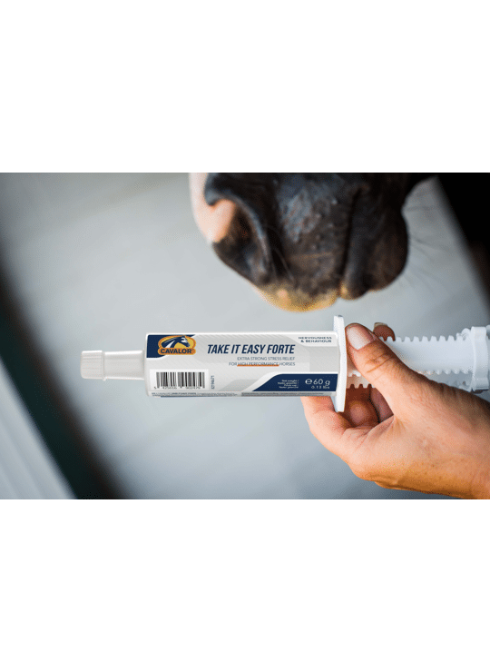 Cavalor Take It Easy Forte, een kalmeringssupplement in pastavorm met extra sterke werking voor een snel en doeltreffend resultaat. Cavalor Take It Easy Forte vermindert angst en de invloed van stress factoren terwijl het de concentratie bevordert. Take It Easy Forte in pastavorm is ideaal om te gebruiken net voor stresspieken zoals competitie en transport.