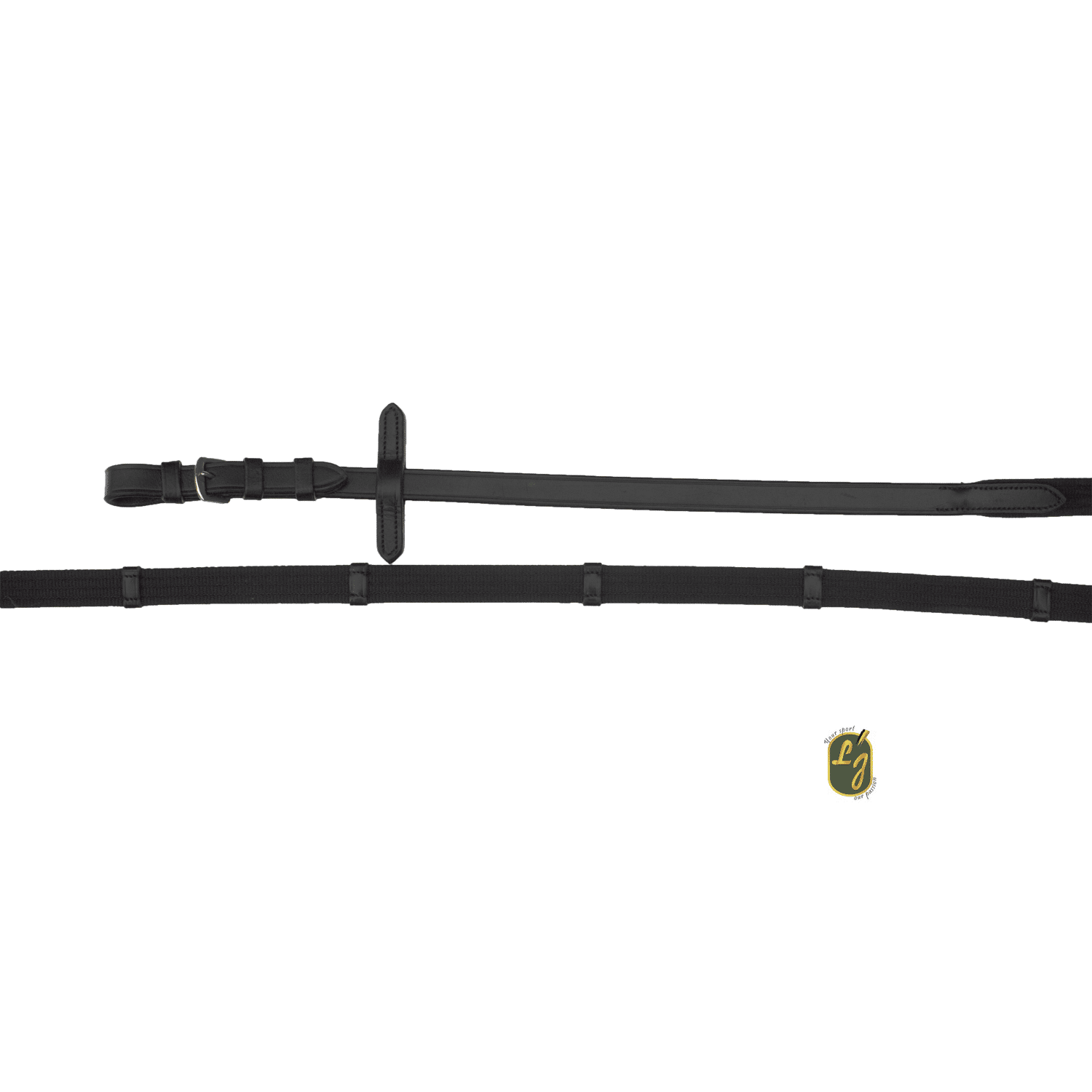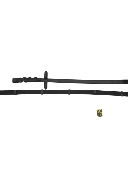 Linnen teugel in buffelleder met lederen stoppers en chroom (zilveren) gespen.