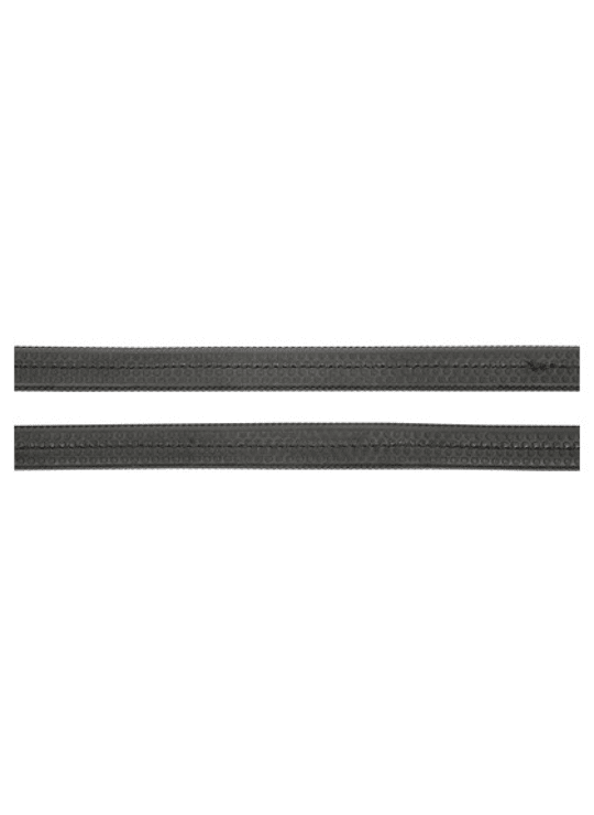 Teugel, nylon met soft rubber omkleed, uiteinden van leder. 18mm breed
