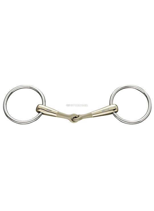 Enkelgebroken Turnado watertrens. 16mm dik. Materiaal RVS met RVS ringen. Het innovatieve middenstuk van de Turnado trens is 45 graden naar voren gedraaid en gelijk aan beide zijden. Dit maakt een gelijke druk over de tongranden mogelijk en krijgt deze trens nooit het 'notenkraker effect' in het gehemelte. Vriendelijk voor de tong. Het middenstuk van het mondstuk is licht gezandstraald zodat deze trens direct opvalt tussen de reguliere enkelgebroken trenzen. Dit heeft geen functie en verdwijnt geleidelijk gedurende het gebruik.
