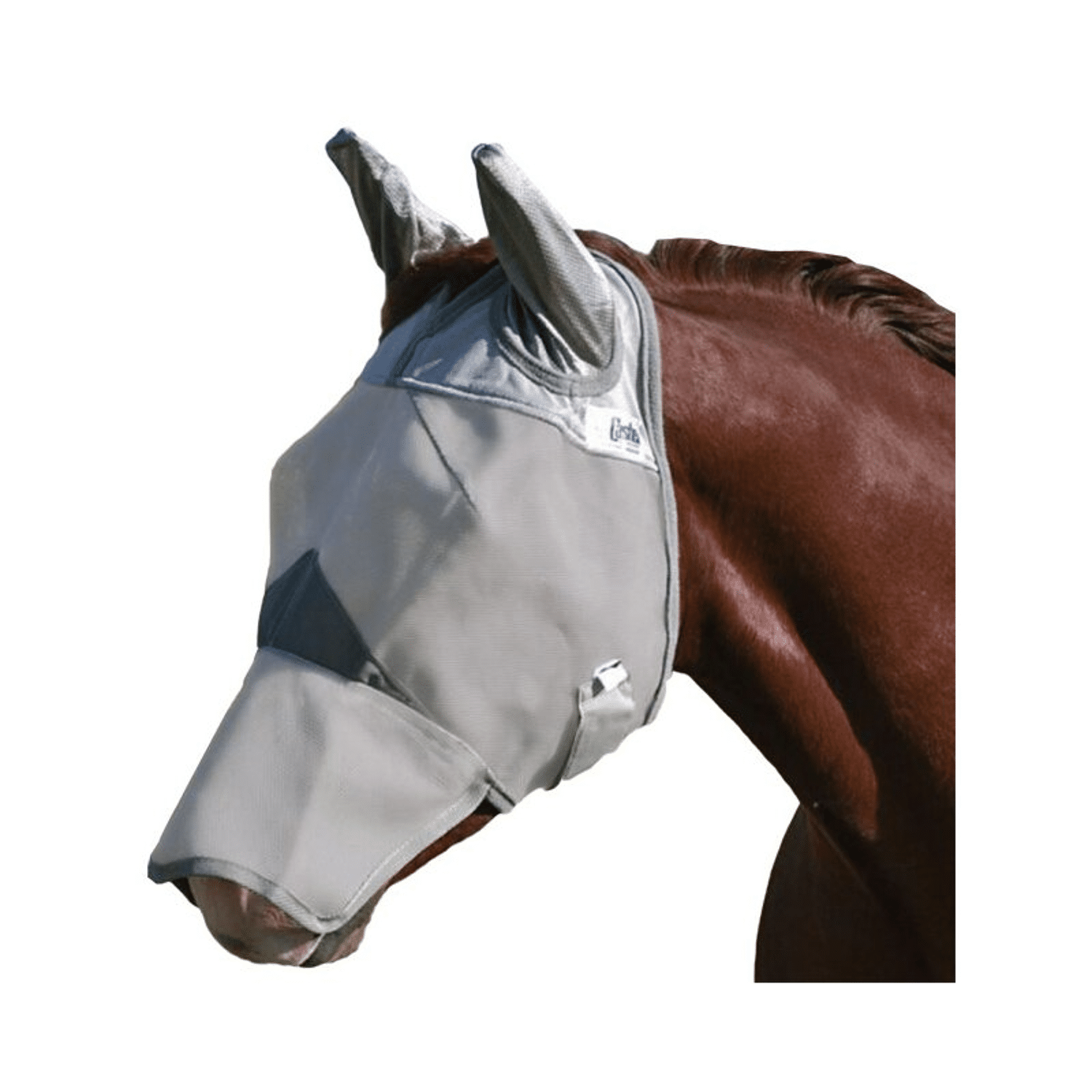 Vliegenmasker met oren en neus van Cashel/Classic Equine. Dit vliegenmasker met uv-bescherming beschermt je paard niet alleen tegen vervelende insecten, maar ook tegen schadelijke uv-straling. Het Cashel vliegenmasker is bewezen zeer robuust! Het vliegenmasker voor paarden beperkt het gezichtsveld van het paard niet. Het vliegen- en insectenmasker voor paarden wordt met klittenband bevestigd voor optimale grip en bescherming.