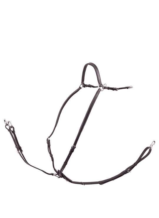 Luxe lederen voortuig met vele verstelmogelijkheden. Het voortuig kan eenvoudig aan het zadel bevestigd worden met musketons aan de onderzijde van de singel. Voor de bevestiging zijn er twee opties: met een musketon of met een lederen lus met een gespsluiting. Het borsttuig is uitgevoerd in het beste volnerf Europese leder, dit leder is sterk, soepel, voelt zacht aan en is duurzaam. De meeste delen zijn zacht onderlegd en het geheel is mooi afwerkt en voorzien van hoge kwaliteit roestvrije messing fournituren. Het voortuig wordt geleverd met een verstelbare, lederen martingaalvork voorzien van een musketon, zodat deze eenvoudig eraf gehaald of erop gezet kan worden. Het zwarte voortuig heeft glanzende, zilverkleurige fournituren en het Tobacco voortuig heeft matte, messingkleurige fournituren.