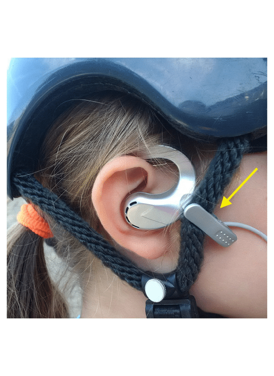 Dit stijlvolle oortje is geschikt voor het rechteroor enbevat een fixatieclipje om het oortje vast te zetten aan je helm of kleding.