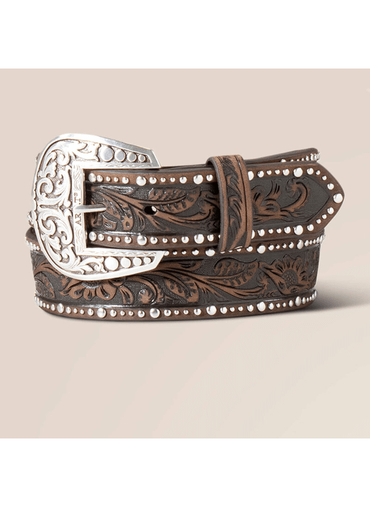 Een geweldige westernriem die geweldig zal staan bij je favoriete jeans. De riem met reliëf, de randen met spijkerkop en de afneembare zilveren gesp zorgen ervoor dat je hem helemaal eigen kunt maken.